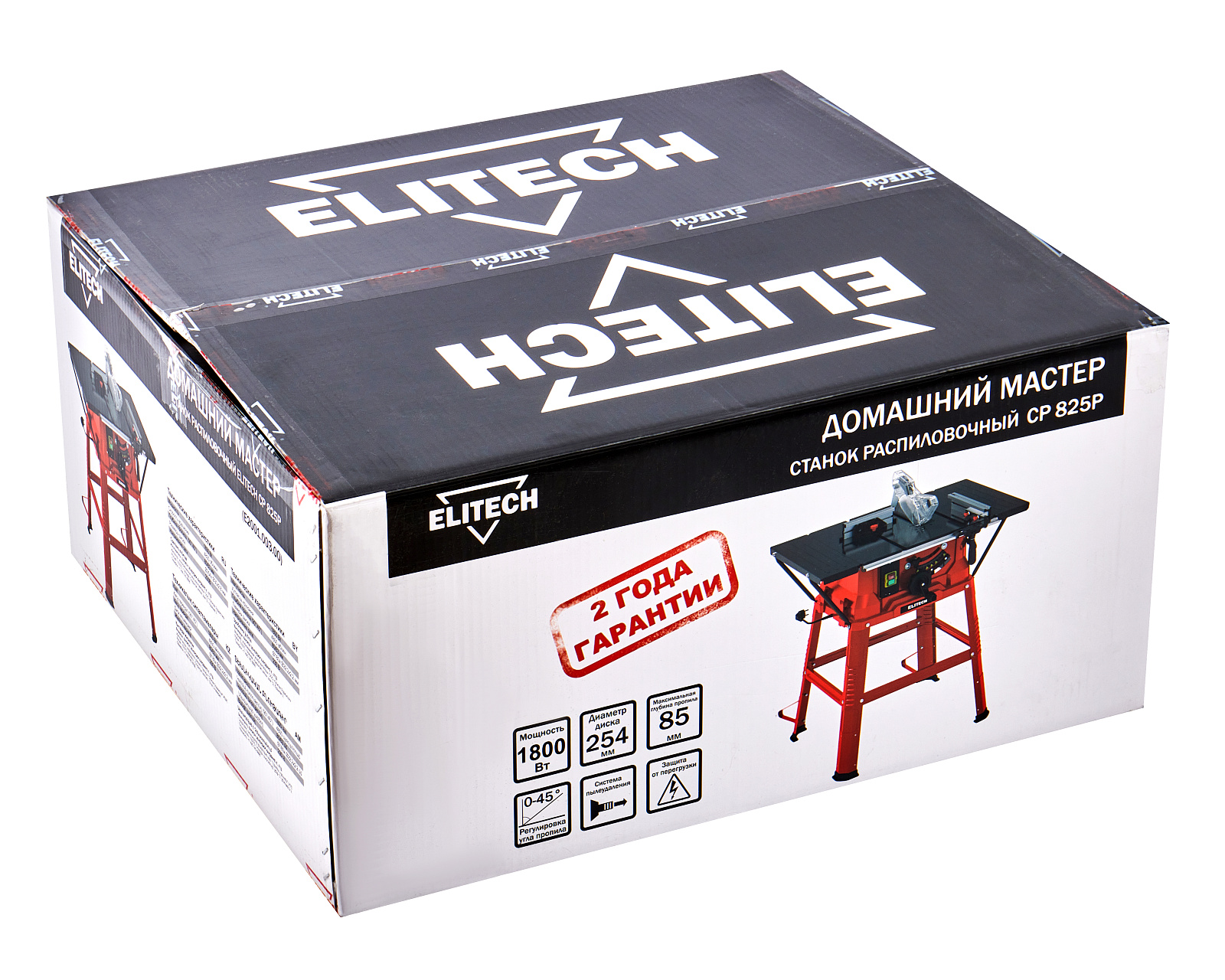 Станок распиловочный ELITECH ДМ СР 825P (E2001.003.00). Предназначен для продольного, поперечного, косого, наклонного и комбинированного пиления заготовок из мягких и твёрдых пород древесины и заготовок на основе древесины. Станок работает от однофазной сети переменного тока напряжением 230 В частотой 50 Гц. Станок может эксплуатироваться в следующих условиях: - температура окружающей среды от +1 до +40 °С;относительная влажность воздуха до 80 % при температуре 25 °С.