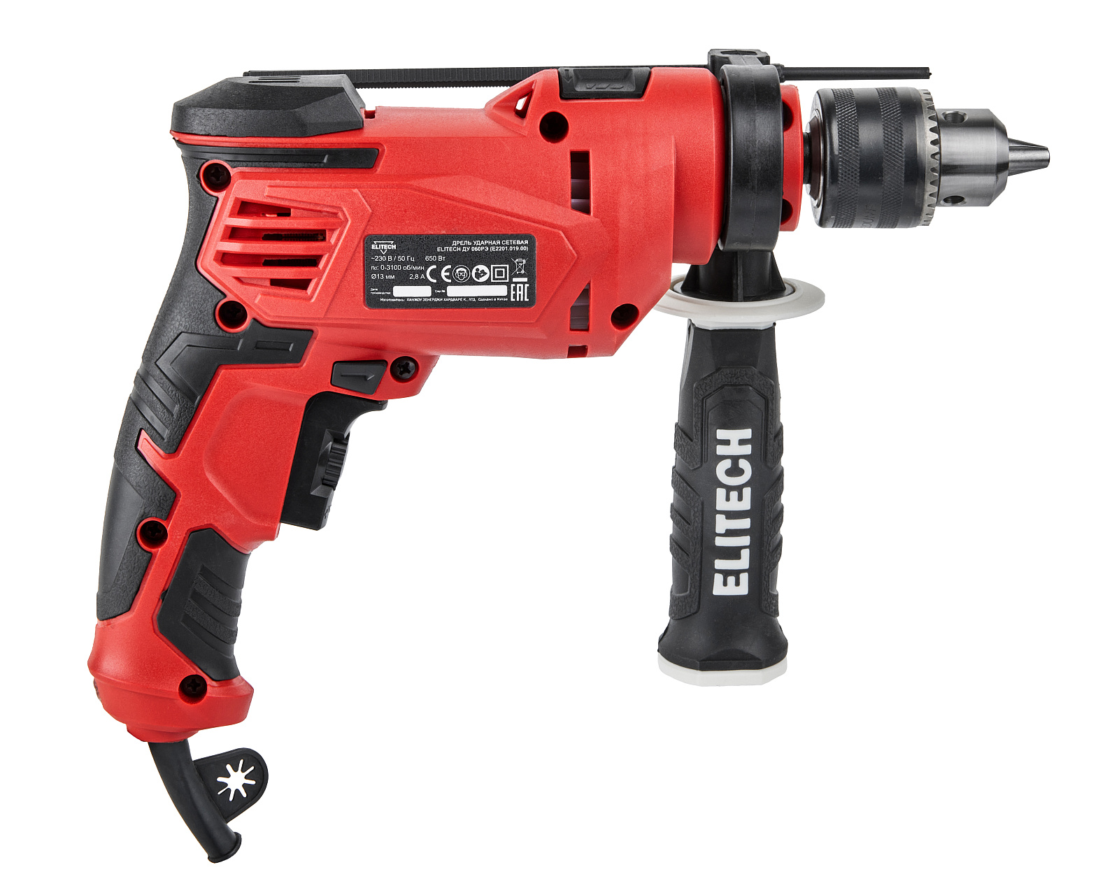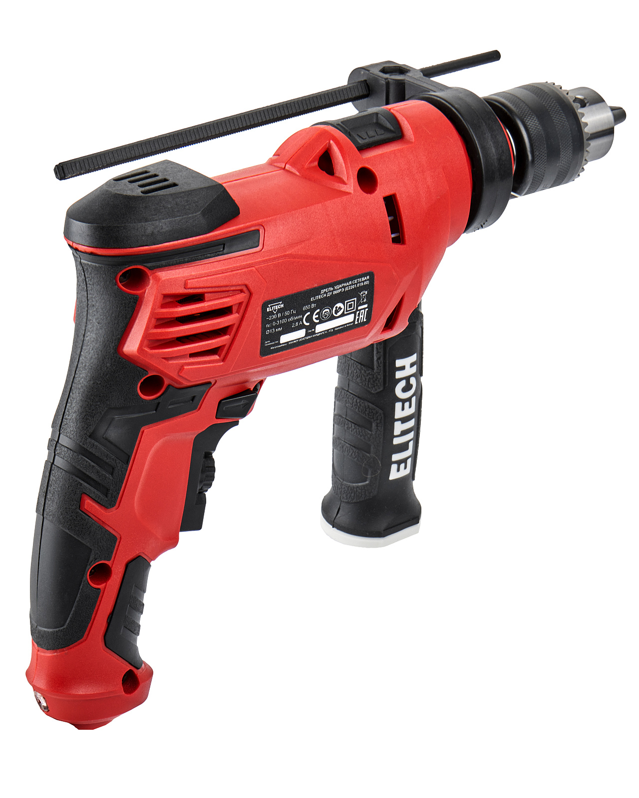 Дрель сетевая ударная ELITECH ДМ ДУ 060РЭ (E2201.019.00). Предназначена для сверления отверстий в дереве, гипсокартоне, керамической плитке, металле, пластмассе, кирпиче, бетоне и других производных материалах. В качестве рабочей насадки для режима сверления используется сверло соответствующего типа (по дереву, по металлу и т.д.), для режима сверление с ударом используется специальное сверло с твердосплавным наконечником.