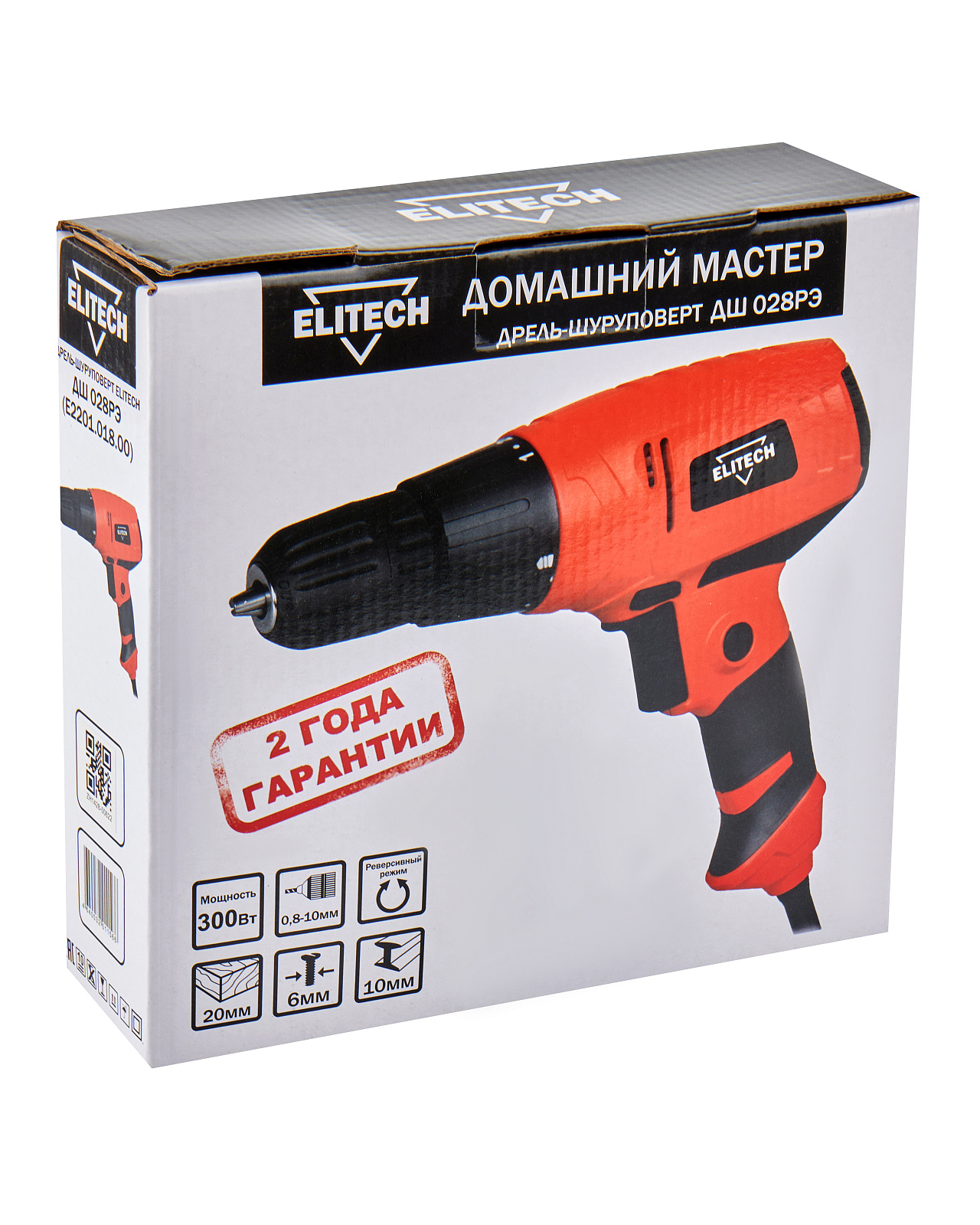 Дрель-шуруповерт сетевая ДШ 028РЭ (E2201.018.00)Быстрозажимной патрон. Регулировка скорости вращения. Регулировка крутящего момента.. Особенности : реверс, противоскользящая эргономичная рукоятка, регулируемая скорость вращения 0-700 об/мин, 20 степеней регулировки крутящего момента, компактная конструкция. Мощность 300 Вт, диапазон зажима патрона 0,8-10 мм, максимальный крутящий момент 25 Нм, максимальный диаметр сверления 20 мм в дереве, 10 мм в стали, длина кабеля питания 2 метра, масса 1,3 кг. Тип двигателя – универсальный коллекторный. Комплектация : дрель-шуруповерт сетевая, сменный комплект щеток, инструкция, упаковка (картонная коробка).
