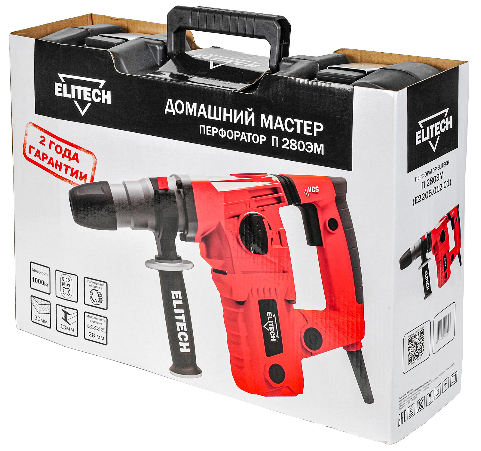 Перфоратор ELITECH ДМ П 280ЭМ (E2205.012.01). Предназначен для бурения отверстий, штробления пазов, разрушения твердых материалов, таких как кирпич, бетон, природный и искусственный камень и т.п. В качестве рабочих насадок в перфораторе могут использоваться бур, зубило, коронка. Рабочие насадки для данной модели перфоратора имеют специальный хвостовик SDS-plus.
