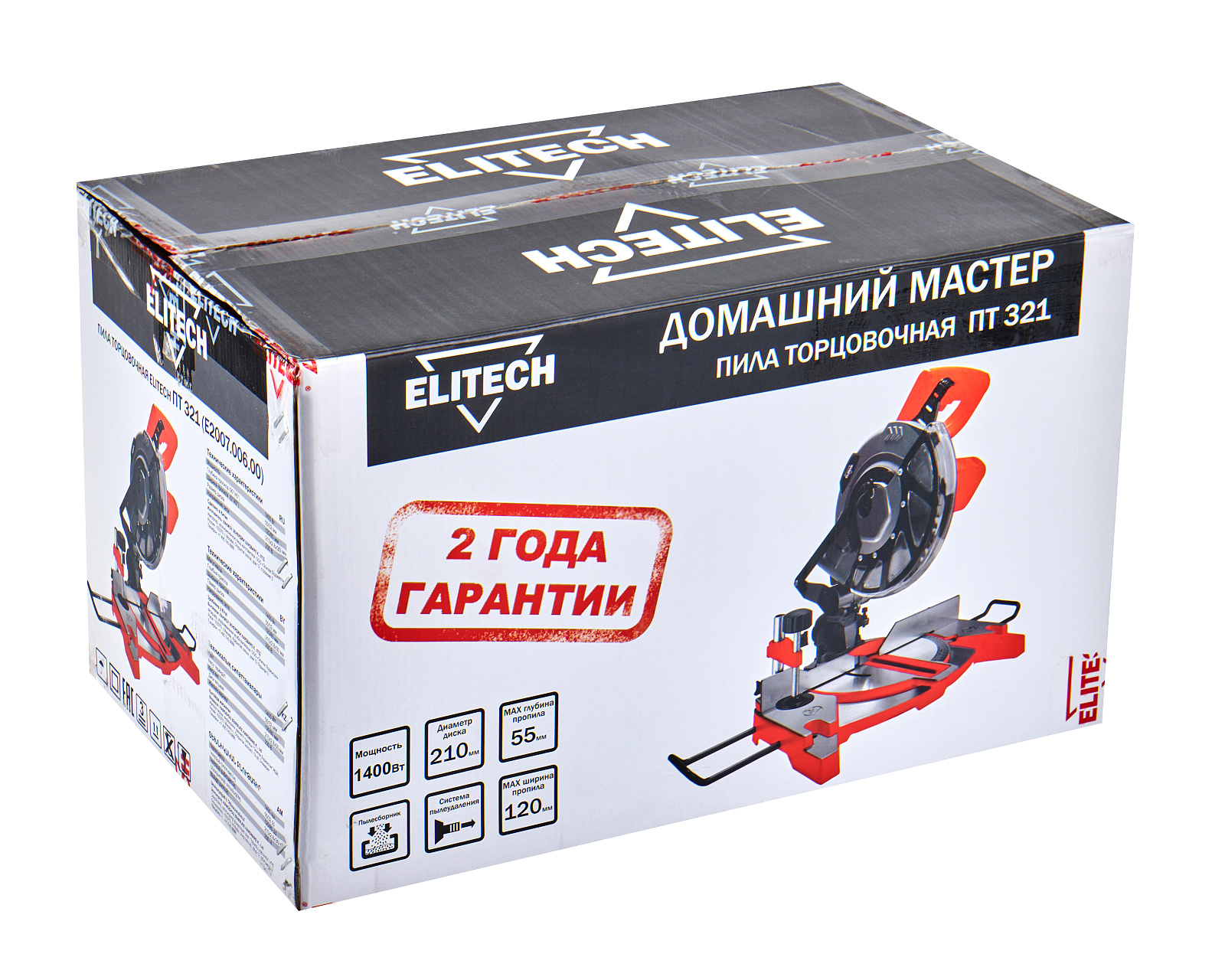 Пила торцовочная ELITECH ДМ ПТ 321 (E2007.006.00). Предназначена для быстрого, точного и удобного торцевания древесины и материалов на ее основе при производстве строительно-монтажных и отделочных работ, изготовления столярных и плотницких изделий. Особенности : регулировка угла пропила в горизонтальной плоскости, регулировка угла наклона диска, система пылеудаления, струбцина для заготовки, удлинители рабочего стола для поддержки заготовки, эргономичная рукоятка, удобное управление, возможность крепления к верстаку.