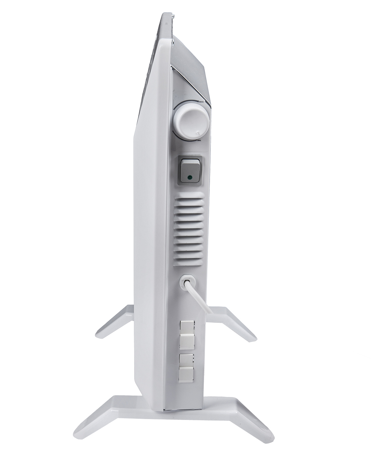 Конвектор мощностью 1000 Вт и оснащается электромеханическим термостатом регулирования температуры и может подвешиваться на стену или устанавливаться на пол. Запрещено использовать конвектор для сушки одежды, т.е. закрывать входные и выходные воздушные отверстия.