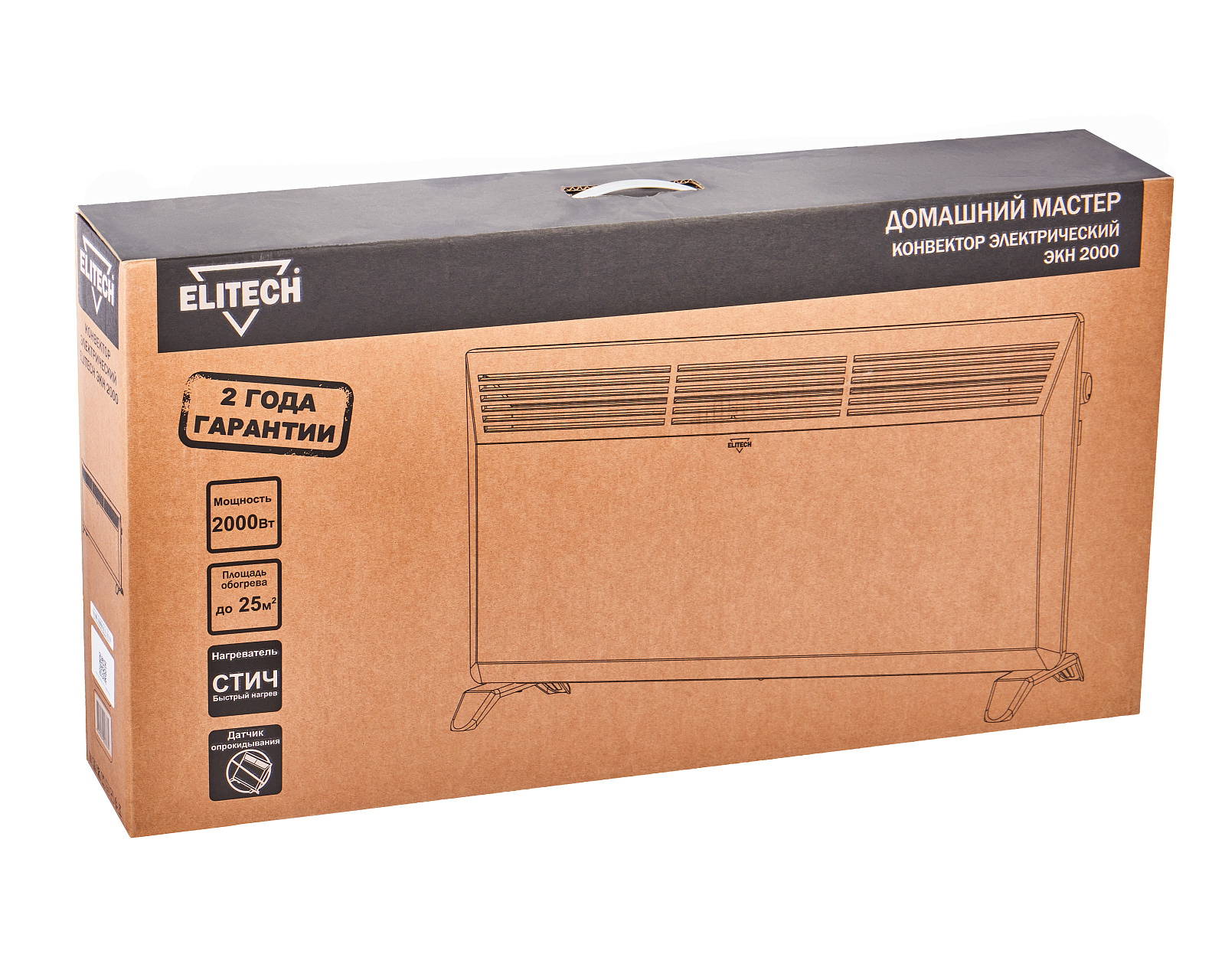 Электрический конвектор ELITECH ДМ ЭКН 2000. Предназначен для обогрева любых помещений площадью до 25 кв.м и автоматического поддержания в них заданной температуры.