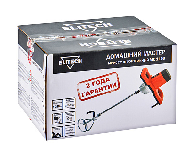 ELITECH Домашний мастер Миксер строительный ELITECH ДМ МС 110Э (E2208.008.01). Предназначен для перемешивания строительных и отделочных материалов, таких как бетон, раствор, штукатурка, краска, клеи и др. Низкие обороты и высокий крутящий момент позволяют работать с самыми плотными смесями.