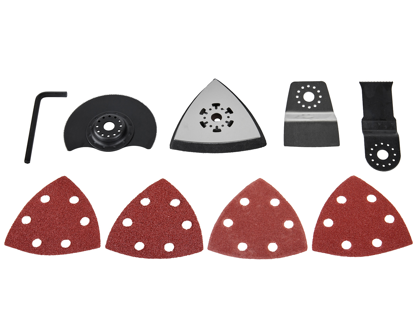 Мультиинструмент ELITECH ДМ МИ 350Э (E2202.002.01). Предназначен для сухого шлифования небольших поверхностей, а также для пиления, шабрения, шлифования, полирования, соскабливания, резки и отделения материала от основы.