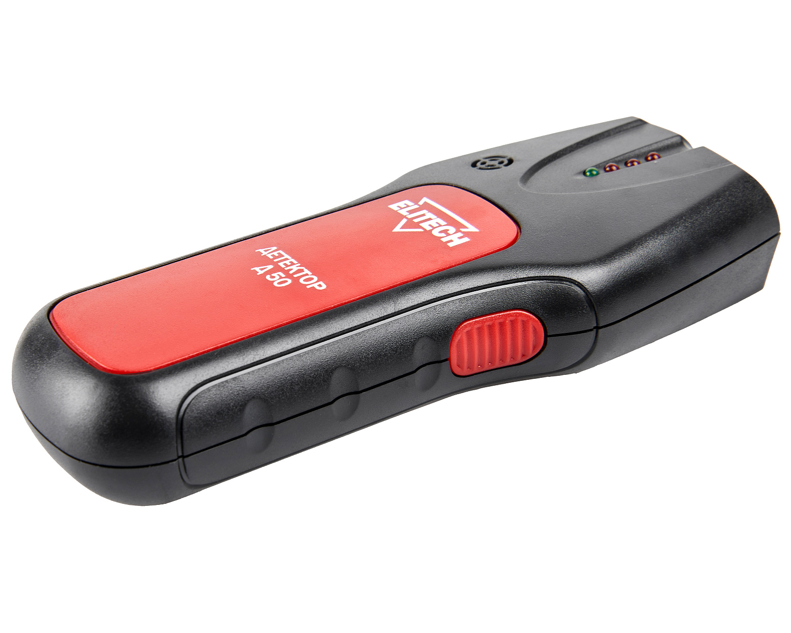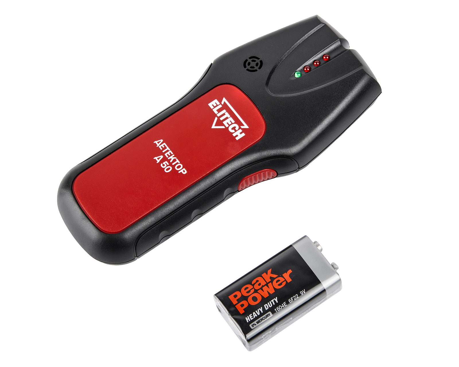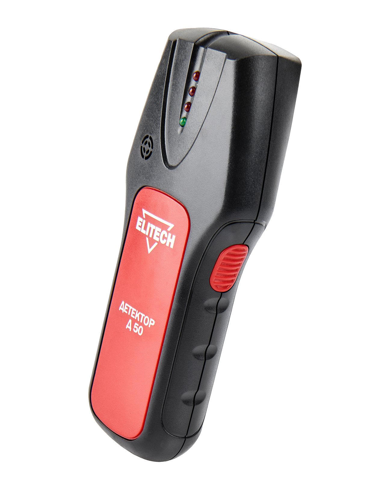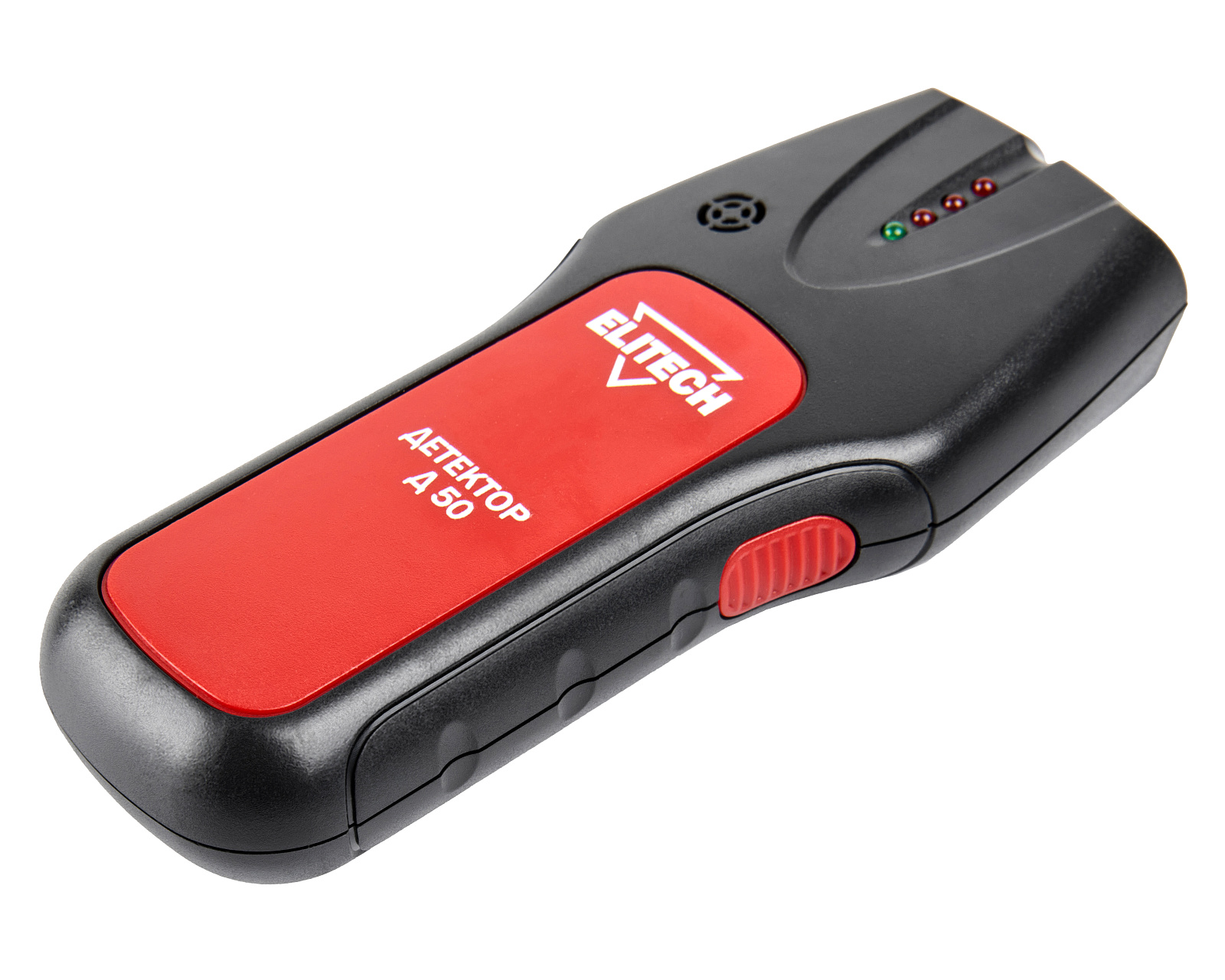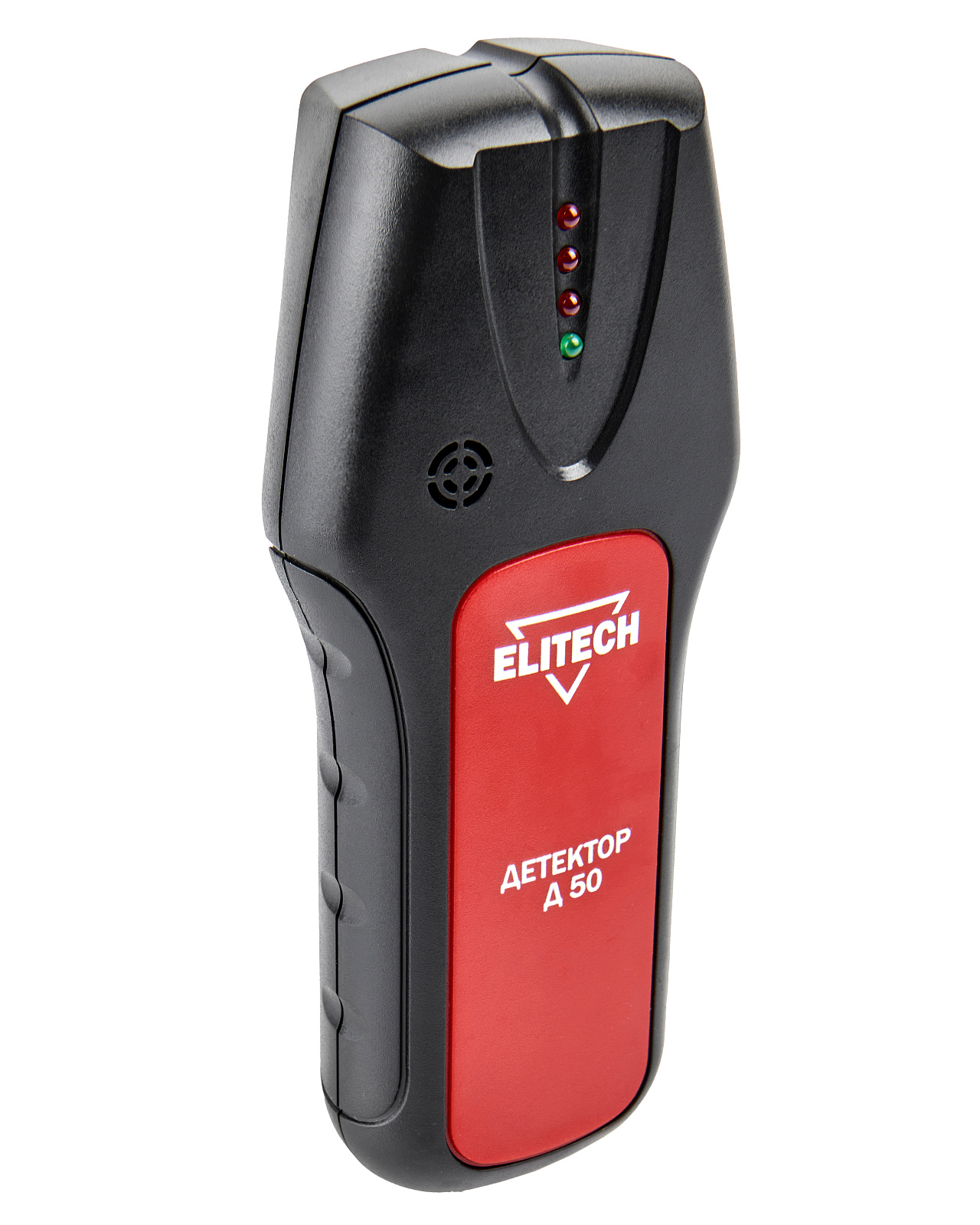 ELITECH Домашний мастер Детектор ELITECH ДМ Д 50. Предназначен для обнаружения различных каркасных элементов, деревянных перекрытий, арматуры и различных проводников электрического тока. Световой и звуковой сигналы облегчают работу с устройством.