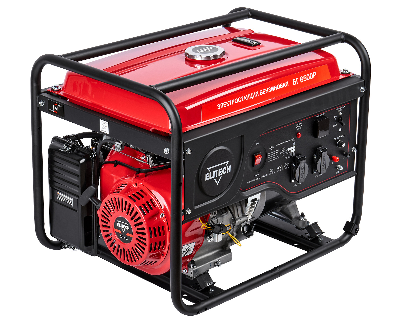 Бензогенератор ELITECH БГ 6500Р. Предназначен для резервного или мобильного источника электропитания однофазных потребителей общей номинальной мощностью до 5 кВт. Для работы с электроинструментом, проведения ремонтных и строительных работ, домашнего и офисного оборудования, бытовых приборов.