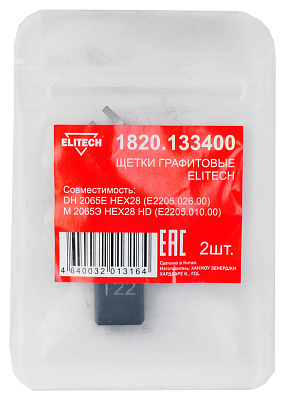 Щетки графитовые ELITECH 1820.133400 для ELITECH DH 2065E HEX28 (E2205.026.00)\М 2065Э HEX28 HD (E2205.010.00) Элемент, используемый для создания скользящего контакта у электродвигателей. Основным их предназначением является подведение и отвод электрического тока на коллекторах различных устройств, агрегатов, инструментов, где применяются электродвигатели. Графит, сталь.