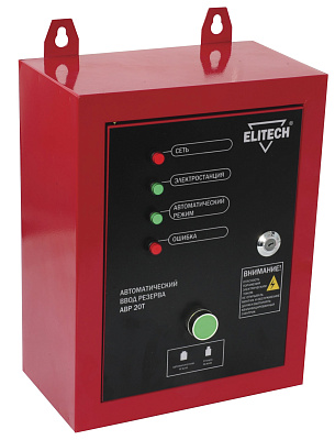 Автоматический ввод резерва ELITECH АВР 20Т предназначен для автоматического запуска резервной электростанции. Данный блок совместим с генераторами Elitech, имеющими на панели управления разъем для подключения блока АВР. Блок автоматического запуска контролирует подачу напряжения от внешней электросети, и при отключении внешнего напряжения, автоматически запускает электростанцию. При возобновлении подачи напряжения от внешней электросети, блок автоматического запуска автоматически останавливает электростанцию и переводит ее в режим ожидания.