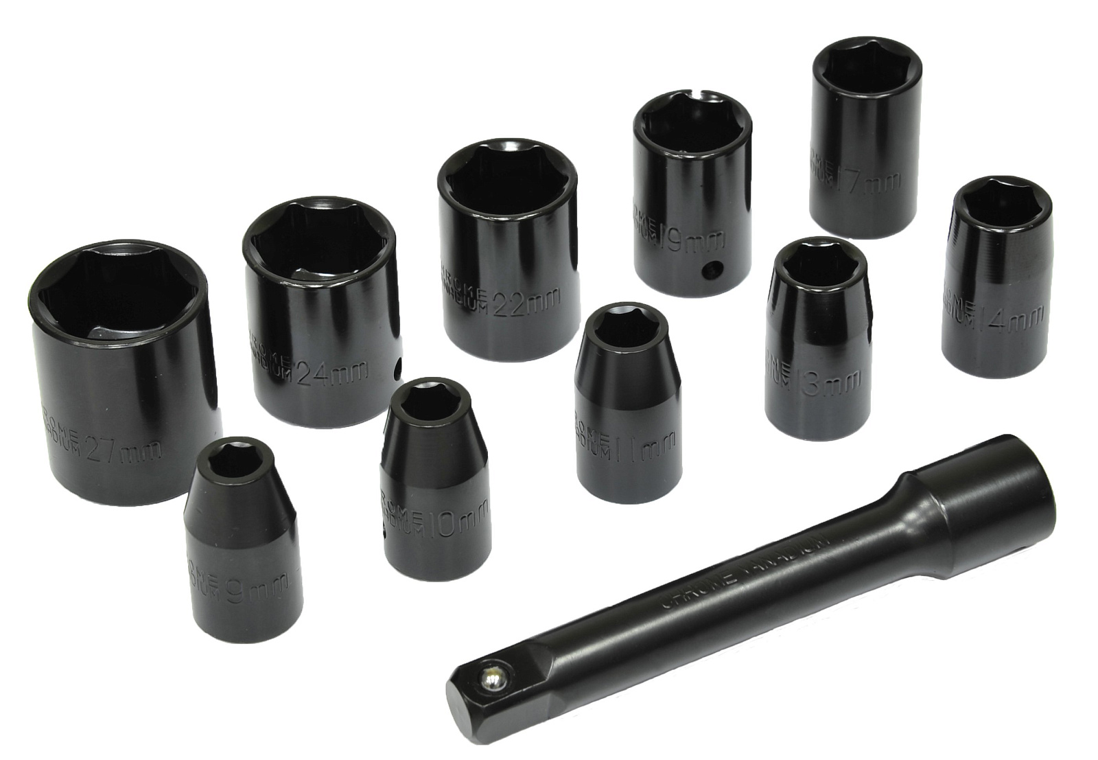 Набор торцевых головок ELITECH 0704.014500 с посадкой 1/2", в наборе 11 головок следующего диаметра: 9, 10, 11, 13, 14, 17, 19, 22, 24, 27 мм.