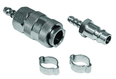 Набор разъемных соединений ELITECH 0704.024800, рапид (штуцер) - ёлочка 6 мм; рапид (муфта) - ёлочка 6 мм, обжимное кольцо 6-11 мм - защита от коррозии, надежная фиксация.