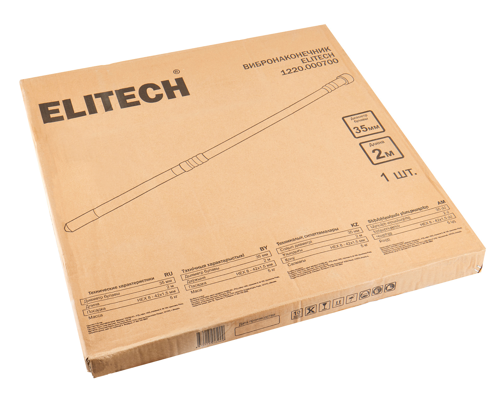 Низкочастотный вибронаконечник ELITECH 1220.000700 для вибраторов по бетону. Диаметр 35 мм, длина 2 м.