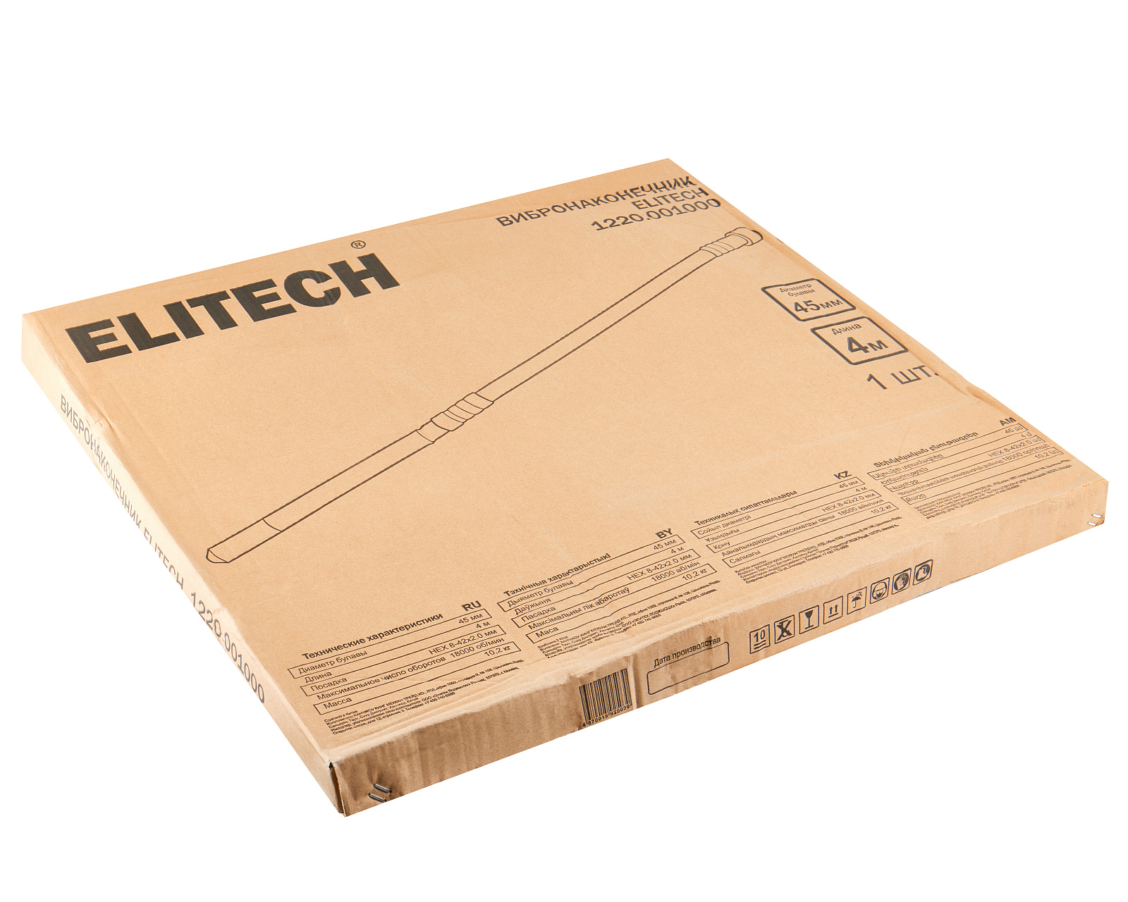 Высокочастотный вибронаконечник ELITECH 1220.001000 для вибраторов по бетону. Диаметр 45 мм, длина 4 м.