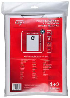 Пылесборник, д\пылесоса, синтетика, многоразовый, 1+2 шт, 70л, д\BOSCH GAS50 \ ELITECH ПС 24-60А2