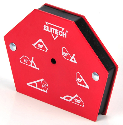 Угольник магнитный Elitech 606.017600. Корпус металлический. Внутри корпуса встроен магнит.