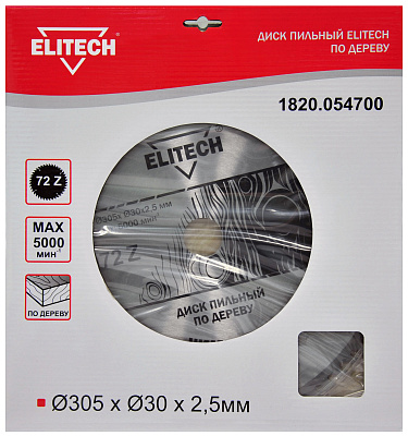 Диск пильный по дереву ELITECH 1820.054700 O305x30x2.5мм, 72 зуб.