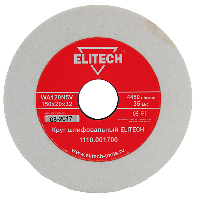 Круг шлифовальный для заточного станка. Размер150х20х32мм. Зернистость 120. Максимальные обороты 4450об/мин. МАксимальная окружная скорость 35м/с. Состав: оксид алюминия+керамическая связка. Цвет - белый. Маркировка: WA120N5V.