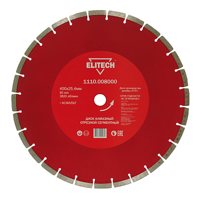 Сегментированный алмазный диск ELITECH 1110.008000 применяется для резки асфальта. При выборе диска важно обратить внимание на материал связки, который подбирается в зависимости от твердости и абразивных свойств обрабатываемого материала. Обеспечивает максимальную производительность.