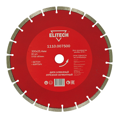 Сегментированный алмазный диск ELITECH 1110.007500 применяется для резки бетона, кирпича. При выборе диска важно обратить внимание на материал связки, который подбирается в зависимости от твердости и абразивных свойств обрабатываемого материала. Обеспечивает максимальную производительность.