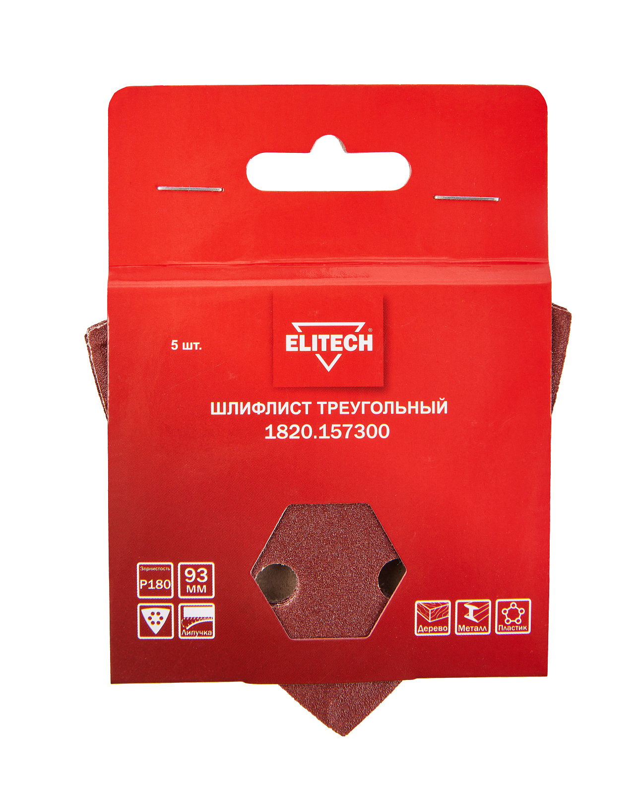 Шлифлист треугольный ELITECH 1820.157300. Предназначен для шлифовки деревянных, металлических, пластиковых поверхностей. Закрепляется с помощью 'липучки' на дельта-подошве многофункционального инструмента (МФУ).