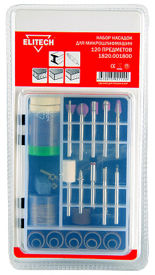 Набор ELITECH 1820.001800 расходных материалов для прямой микрошлифмашины. Набор 120 предметов : оправка для полировального круга, оправка для отрезного круга, оправка для шлифовальных колец 2 шт., шарошка шлифовальная (розовая) 5 шт., шарошка шлифовальная (белая), фигурная шарошка 7 шт., абразивное шлифовальное кольцо 12 шт., плоский полировальный круг 4 шт., нейлоновая кардщетка, латунная кардщетка, фрезерное сверло, цанга 3 шт., HSS сверло 3 шт., фигурная шарошка (белая), шлифовальный лист 40 шт., отрезной абразивный круг 36 шт., правильный камень, ключ. Набор 120 предметов: Оправка для полировального круга – 1 шт Оправка для отрезного круга – 1 шт Оправка для шлифовальных колец – 2 шт Шарошка шлифовальная (розовая) – 5 шт Шарошка шлифовальная (белая) – 1 шт Фигурная шарошка – 7 шт Абразивное шлифовальное кольцо – 12 шт Плоский полировальный круг – 4 шт Нейлоновая кардщетка – 1 шт Латунная кардщетка – 1 шт Фрезерное сверло – 1 шт Цанга – 3 шт HSS сверло – 3 шт Фигурная шарошка (белая) – 1 шт Шлифовальный лист – 40 шт Отрезной абразивный круг – 36 шт Правильный камень – 1 шт Ключ – 1 шт