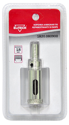 Коронка алмазная по керамограниту в сборе ELITECH 1820.080900, 18 мм.