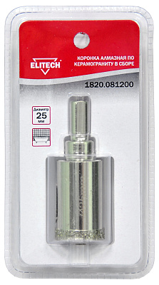 Коронка алмазная по керамограниту в сборе ELITECH 1820.081200, 25 мм.