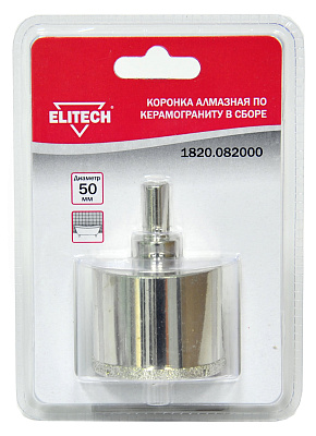 Коронка алмазная по керамограниту в сборе ELITECH 1820.082000, 50 мм.