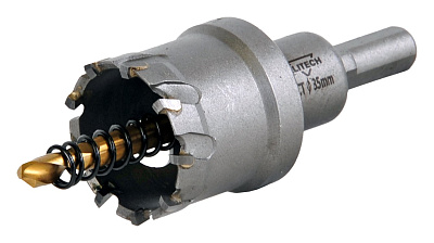 Коронка по металлу твердосплавная предназначена для сверления отверстий в стали и цветных металлах. В нержавеющей стали до 3мм. Материал режущей части: вставки из карбида вольфрама. Диаметр 35 мм Скорость вращения: 600 об/мин. Крепежный хвостовик: 10