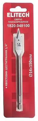 Сверло плоскофрезерное ELITECH 1820.048100 O14x150мм.