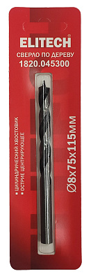 Сверло для дерева ELITECH 1820.045300 O8x85x115мм