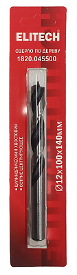 Сверло для дерева ELITECH 1820.045500 O12x125x155мм
