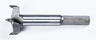 - Небольшой наконечник и плоская форма рабочей части позволяют сверлить глухие отверстия. Чаще всего эта группа изделий применяется для врезки мебельных петель, самые востребованные в этом случае варианты имеют диаметр 32 и 35 мм.