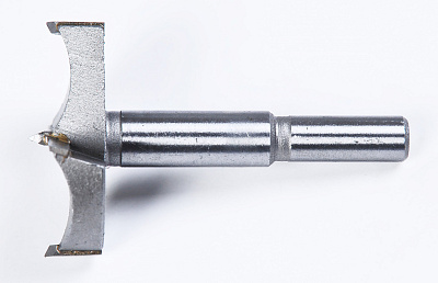 - Небольшой наконечник и плоская форма рабочей части позволяют сверлить глухие отверстия. Чаще всего эта группа изделий применяется для врезки мебельных петель, самые востребованные в этом случае варианты имеют диаметр 32 и 35 мм.