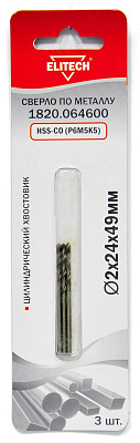 Сверло для металла ELITECH 1820.064600 O2.0х24х49мм.