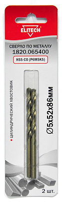 Сверло для металла ELITECH 1820.065400 O5.0х52х86мм.