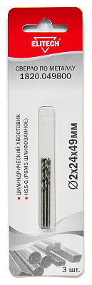 Сверло для металла ELITECH 1820.049800 O2.0х24х49мм.