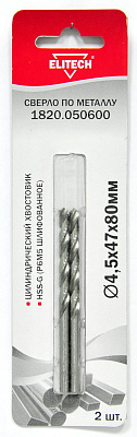 Сверло для металла ELITECH 1820.050600 O4.5x47х80мм.