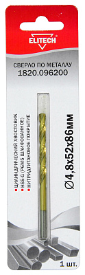 Сверло для металла ELITECH 1820.096200 O4.8х52х86мм.