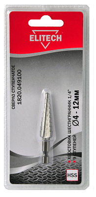Сверло ступенчатое ELITECH 1820.049100 O4x12мм, 9 ступеней.