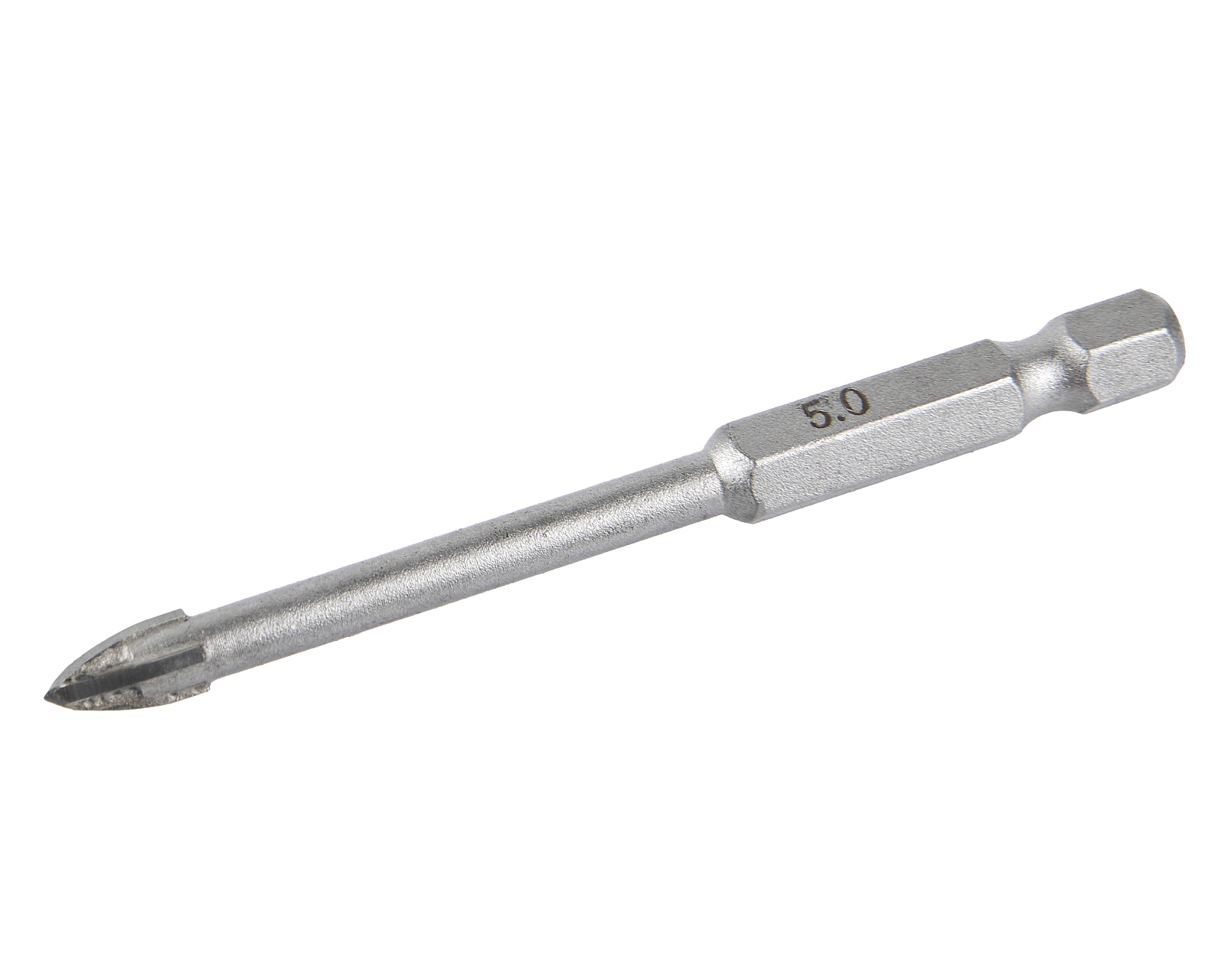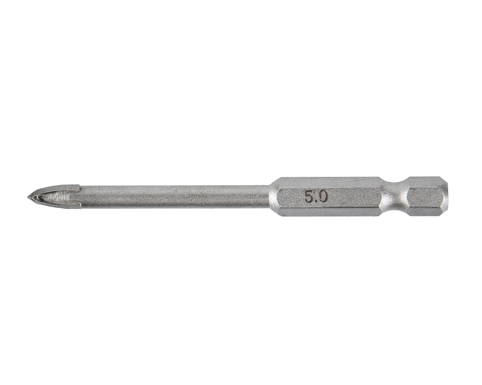 Для сверления отверстий в кафельной плитке и стекле используются сверла с твердосплавом крестовидной формы (в виде наконечника копья или стрелы) с острой кромкой. Такая форма пластины облегчает засверливание и прохождение верхнего защитного слоя на плитке. Для исключения повреждения материала сверление нужно проводить в безударном режиме и с небольшой скоростью, то есть нужно использовать сетевую дрель с пониженной скоростью вращения или аккумуляторную дрель.
