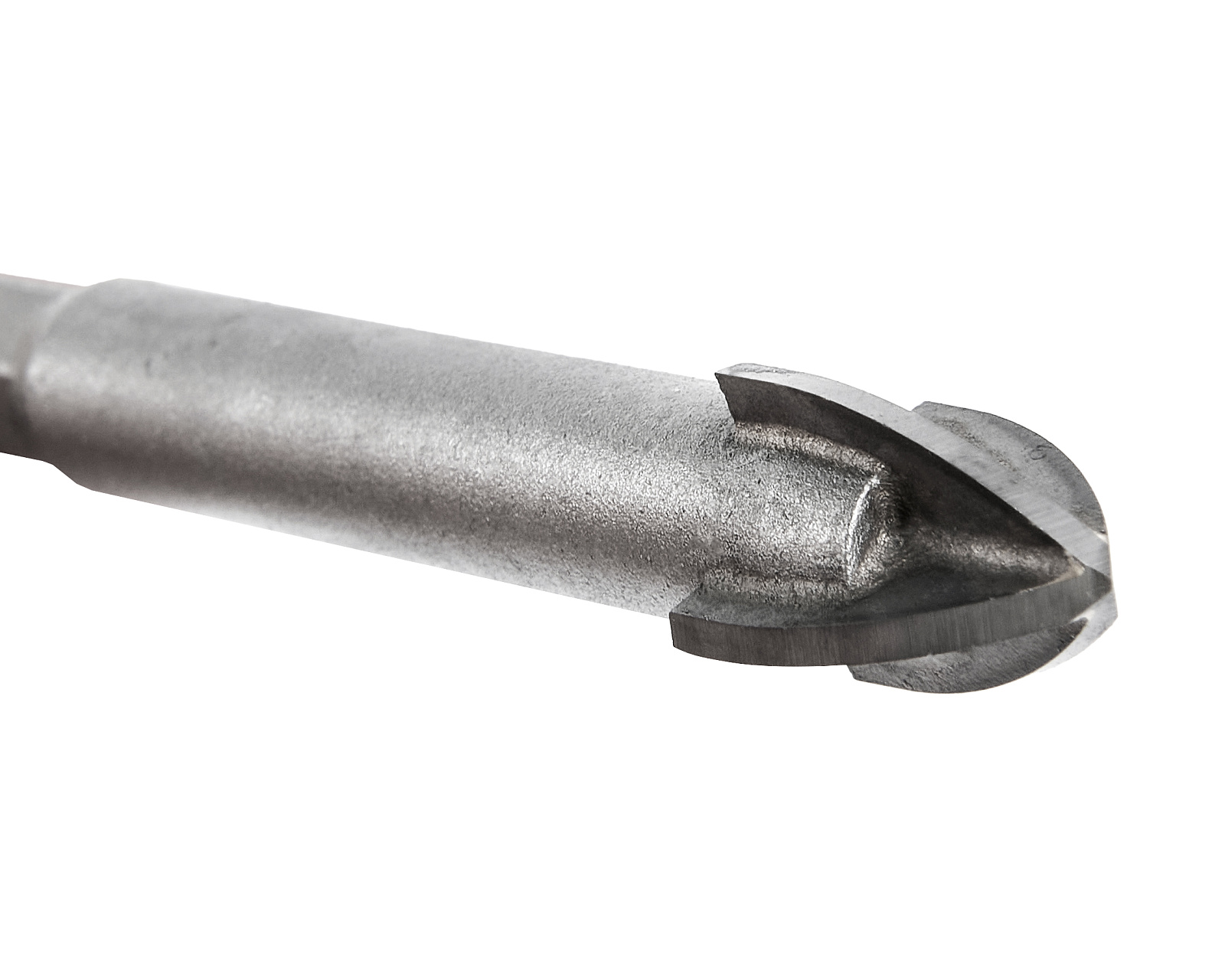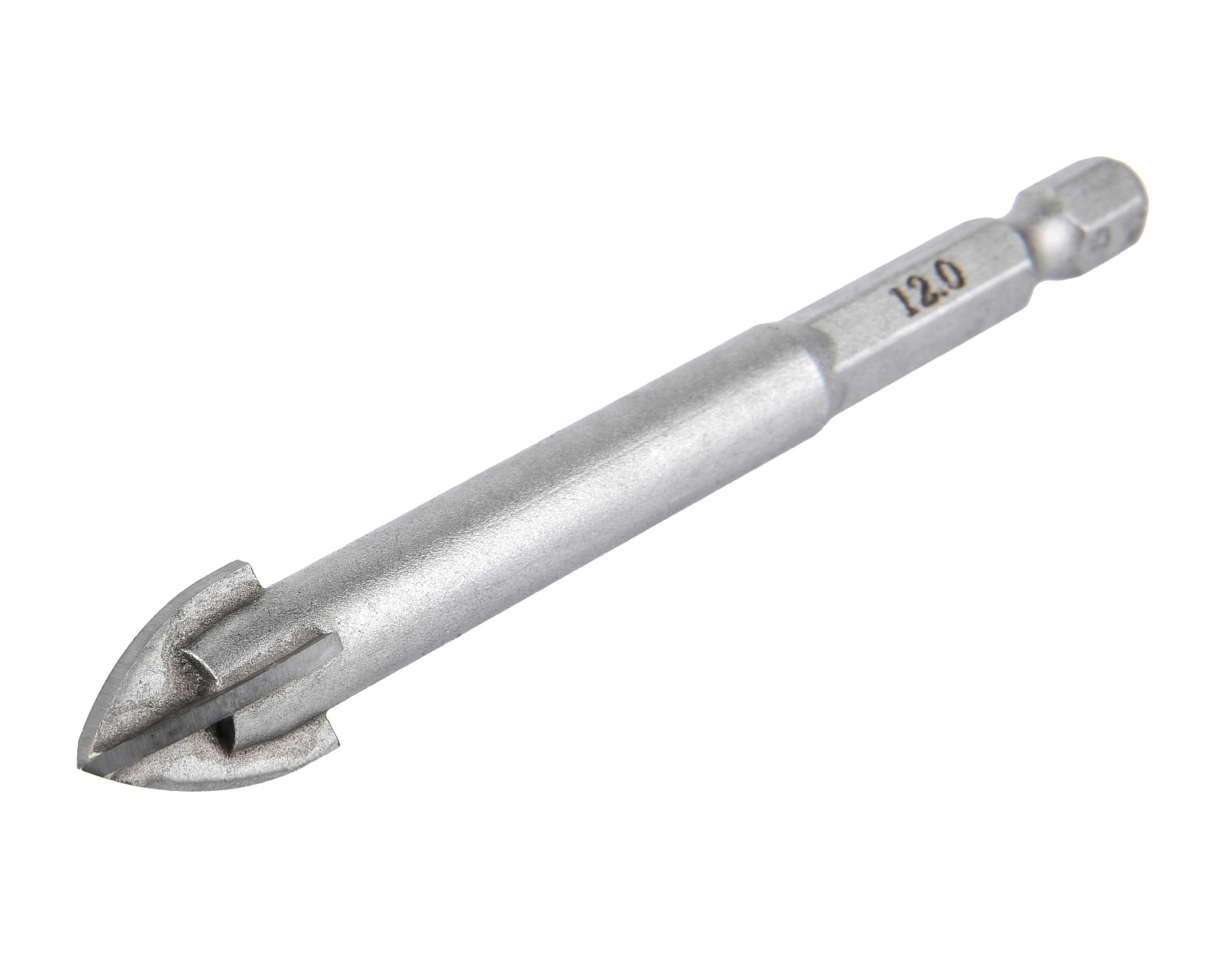 Для сверления отверстий в кафельной плитке и стекле используются сверла с твердосплавом крестовидной формы (в виде наконечника копья или стрелы) с острой кромкой. Такая форма пластины облегчает засверливание и прохождение верхнего защитного слоя на плитке. Для исключения повреждения материала сверление нужно проводить в безударном режиме и с небольшой скоростью, то есть нужно использовать сетевую дрель с пониженной скоростью вращения или аккумуляторную дрель.