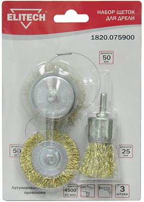Набор щеток ELITECH 1820.075900 для дрели, 3 шт., 1 плоская, 50 мм, + 2 "чашки", 25-50 мм, со шпильками, металлические.