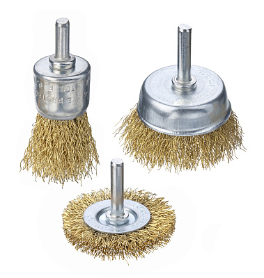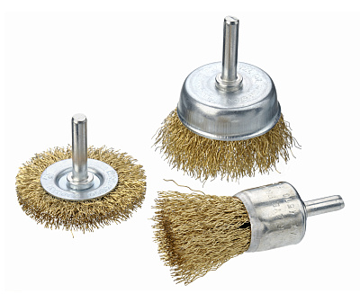 Набор щеток д\дрели, 3 шт., 1 плоская, 50 мм, + 2 'чашки', 25-50 мм, со шпильками, мет.