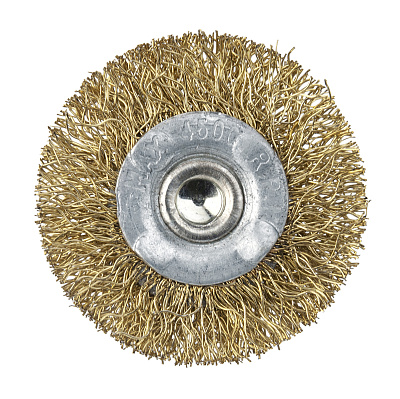 Щетка д\дрели, 40 мм, плоская со шпилькой, латунированная витая проволока 0,3 мм