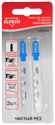 Пилка для лобзика (полотно пильное) ELITECH 1820.086300. Зубья позволяют выполнять чистый пропил (T118A).