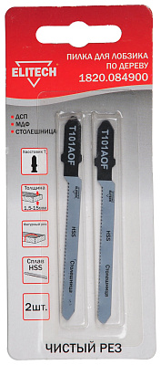 Пилка для лобзика (полотно пильное) ELITECH 1820.084900. Зубья позволяют выполнять чистый/фигурный пропил (T101AOF).
