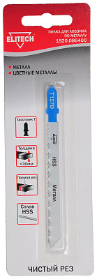 Пилка для лобзика (полотно пильное) ELITECH 1820.086400. Зубья позволяют выполнять чистый пропил (T127D).