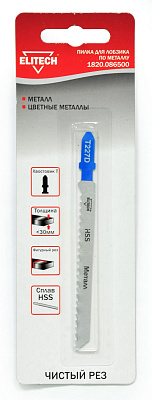 Пилка для лобзика (полотно пильное) ELITECH 1820.086500. Зубья позволяют выполнять чистый/фигурный пропил (T227D).