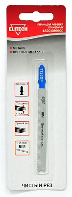 Пилка для лобзика (полотно пильное) ELITECH 1820.086600. Зубья позволяют выполнять чистый пропил (T123XF).